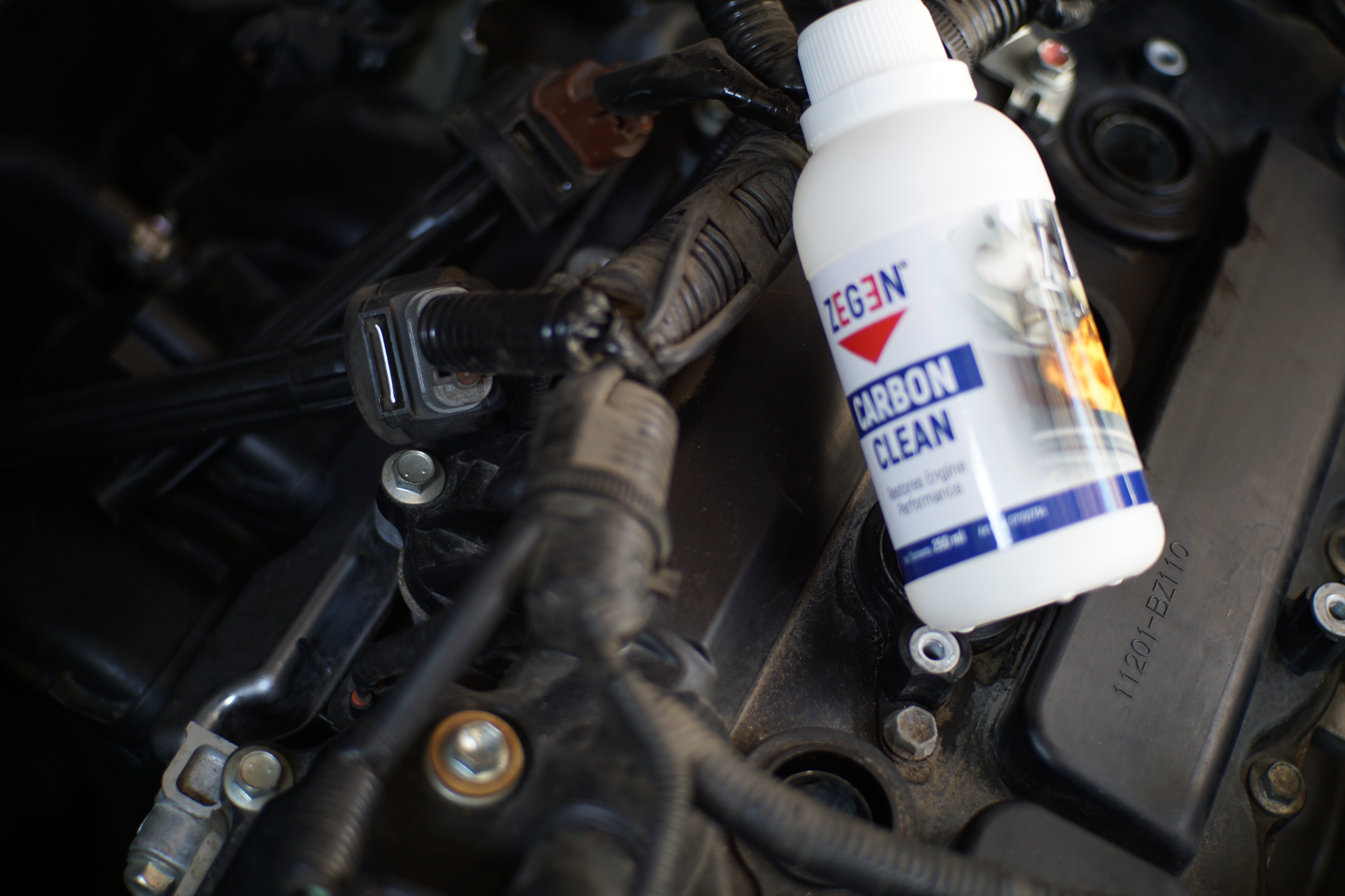 Pertama sebelum membersihkan mesin menggunakan carbon cleaner, panaskan mesin kendaraan terlebih dahulu. Pemanasan mesin ini dilakukan selama 5 sampai 10 menit hingga kendaraan berada pada suhu kerjanya. Setelah sampai pada suhu kerja kendaraan maka matikan mesin. Sembari memanaskan mesin pastikan sudah disiapkan carbon cleaner yang akan digunakan. Dalam hal ini digunakan 1 botol carbon cleaner cair berukuran 250 ml.